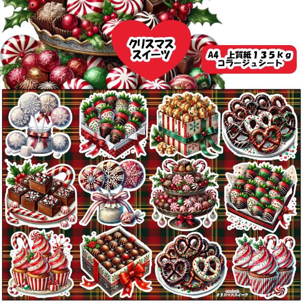コラージュペーパー クリスマススイーツ ハーフ 4枚